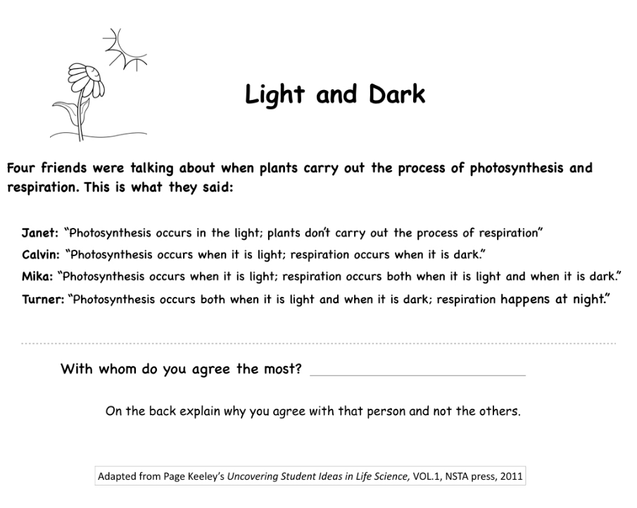 Rationale: This is a powerful tool for disabusing students of misconceptions so is often used for tricky areas where misconceptions are especially persistent. It reveals student thinking to the teacher, then, as they “talk it out” with classmates students reinforce their own ideas or begin to see the flaws in their logic.