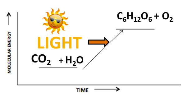 What we figured out... We see that photosynthesis requires energy, specifically the energy in sunlight. The sun’s energy is used to rearrange low energy reactants into high energy products.